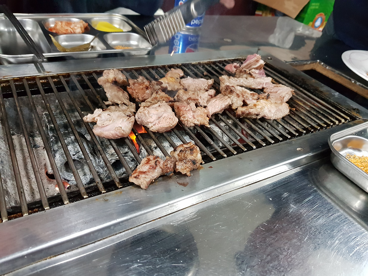양갈비와 기타 부위들을 사장님이 맛있게 구워주고 우리는 술과 함께 맛있게 먹기만 하면 된다.