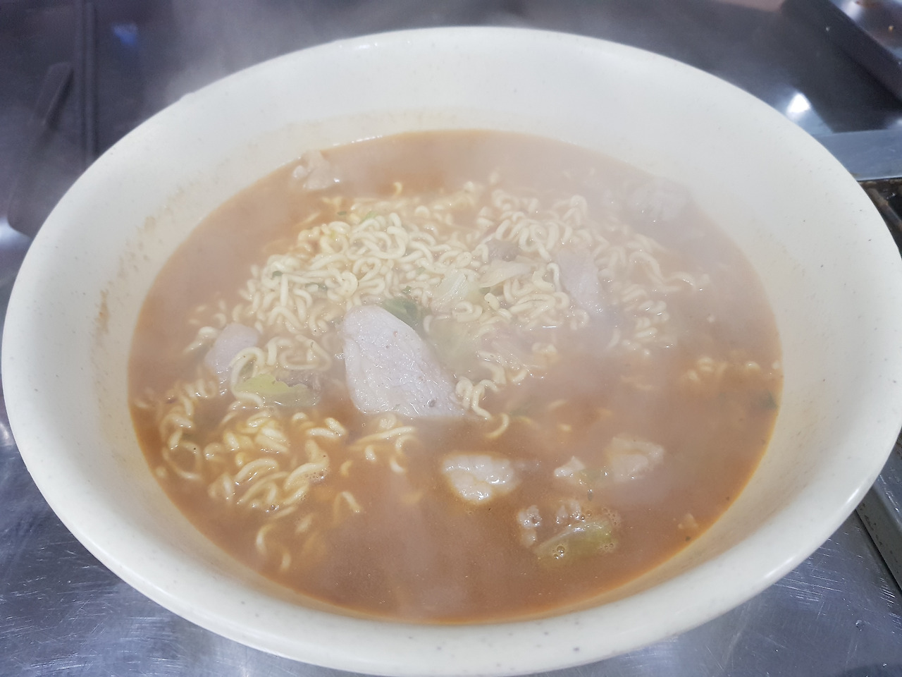 사진은 일반라면 같지만 면발이 그냥 라면같진 않은 이국적인 식감이다. 이걸 먹을 때쯤이면 맛보단 따뜻한 국물때문에 주문할 가능성이 높긴 하지만 맛도 있기 때문에 다 먹는 것이 아닐까?