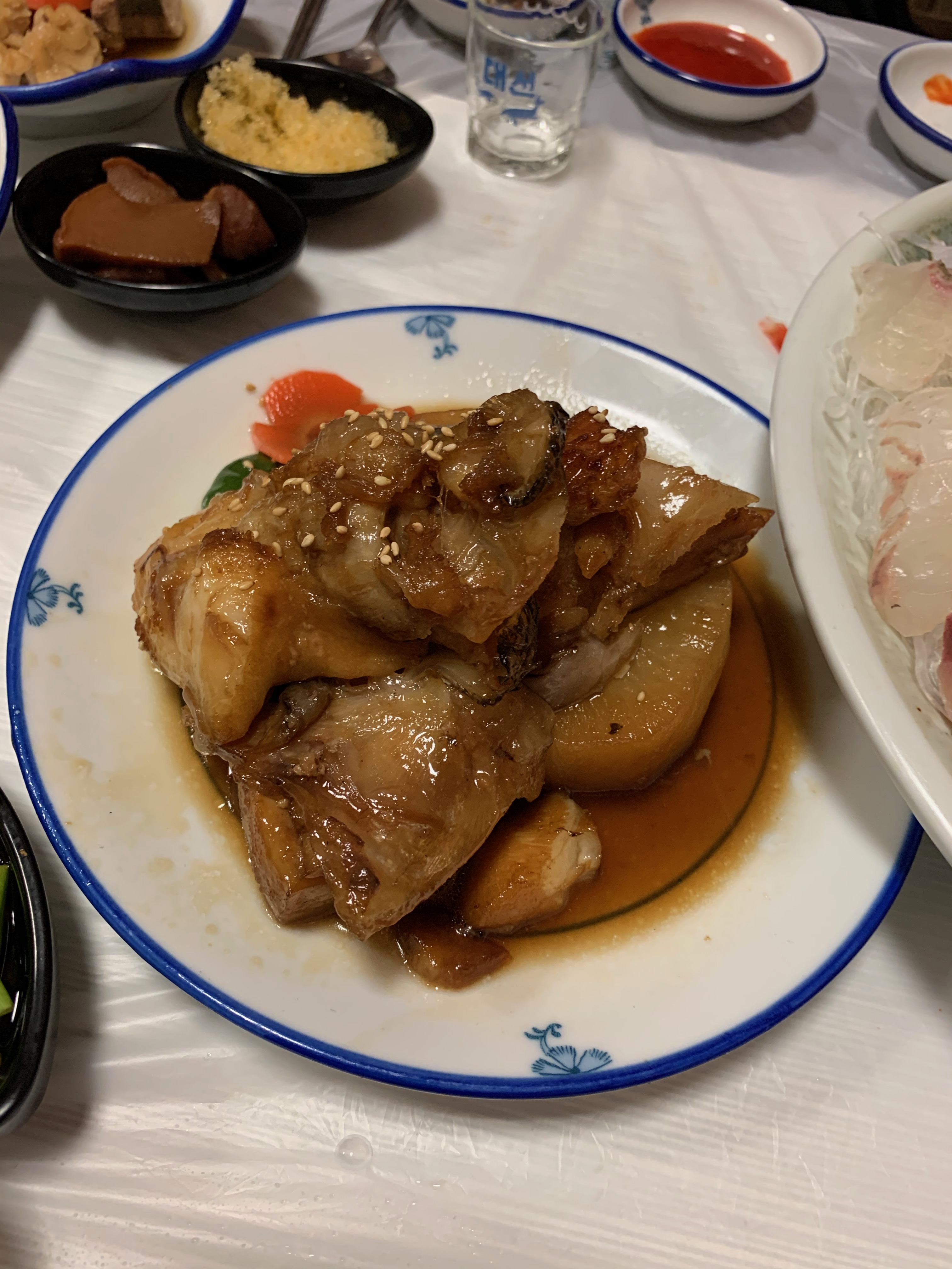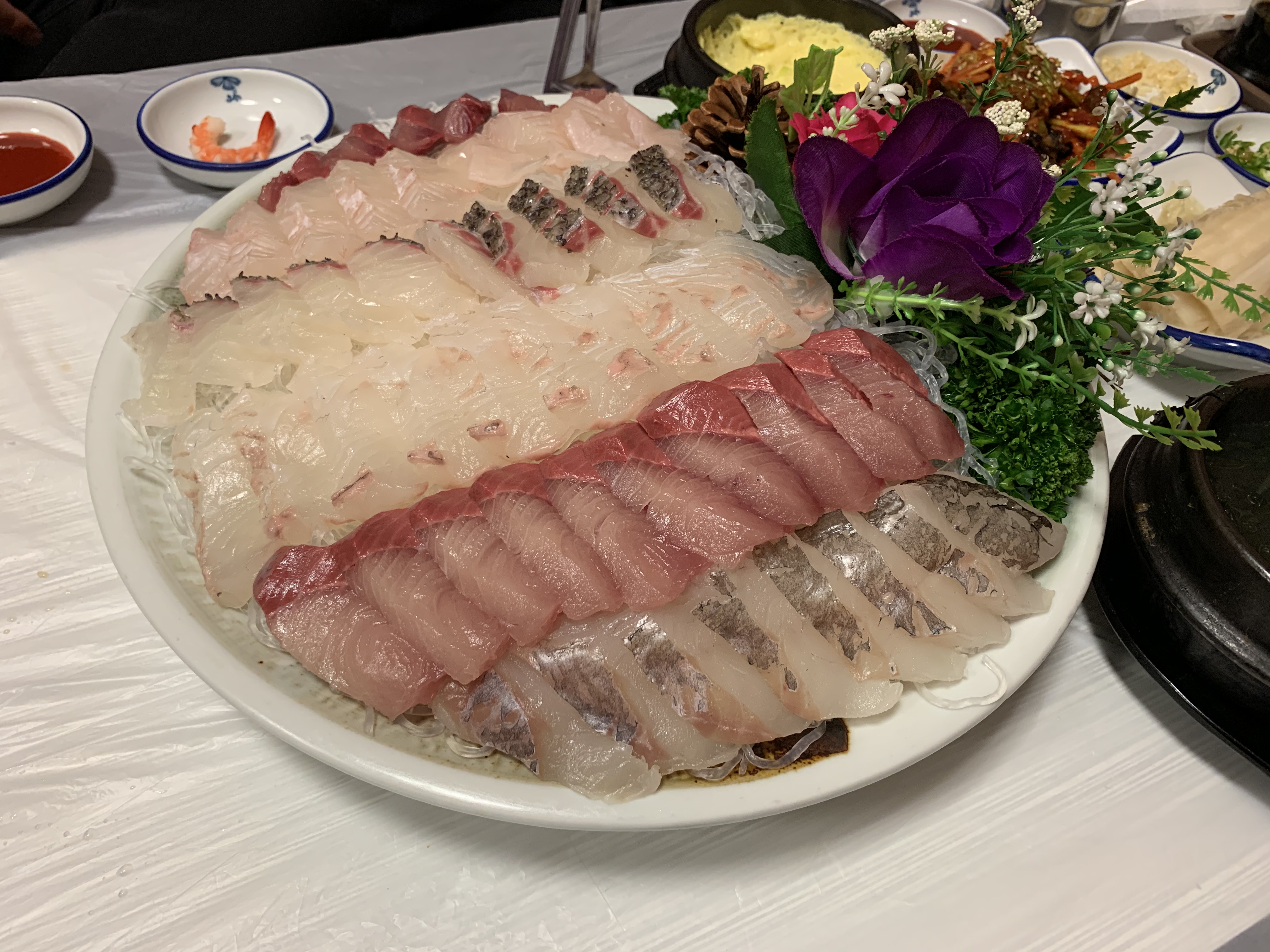 모듬회 3인 중으로 2개를 시키고 싶었는데 4인 대 를 주문하면 기본안주도 리필이 되고 메로구이도 나온다고 해서 결국 한쪽 테이블은 모듬회 대를 주문했다.