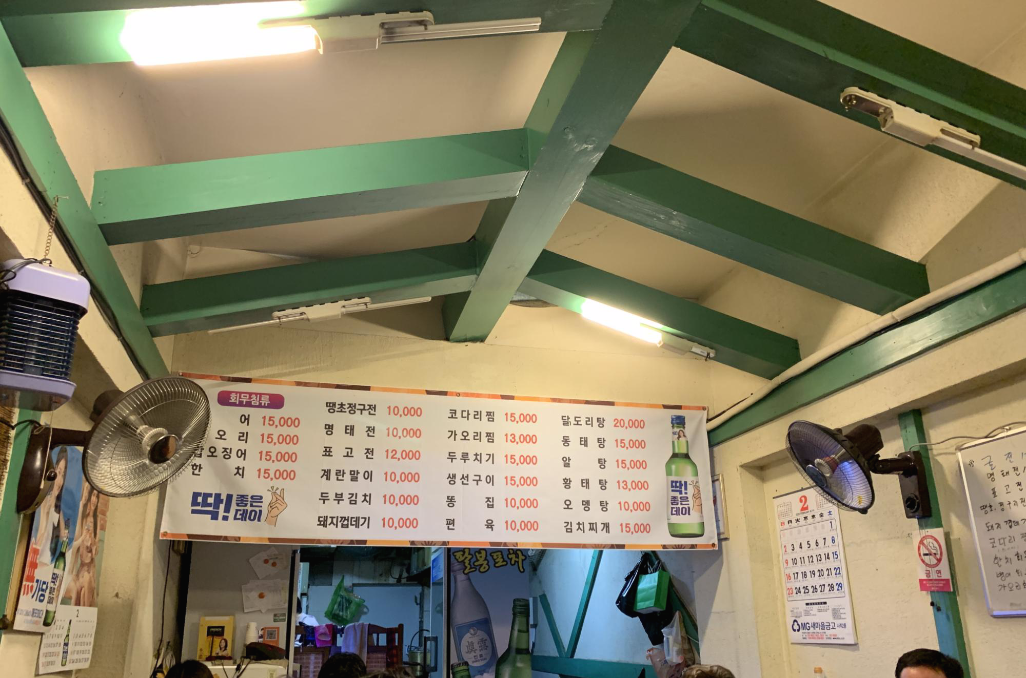 이정도면 저렴한 가격이지 않을까? 코로나의 여파로 조용한 가운데 여기 술집은 만석이었다.