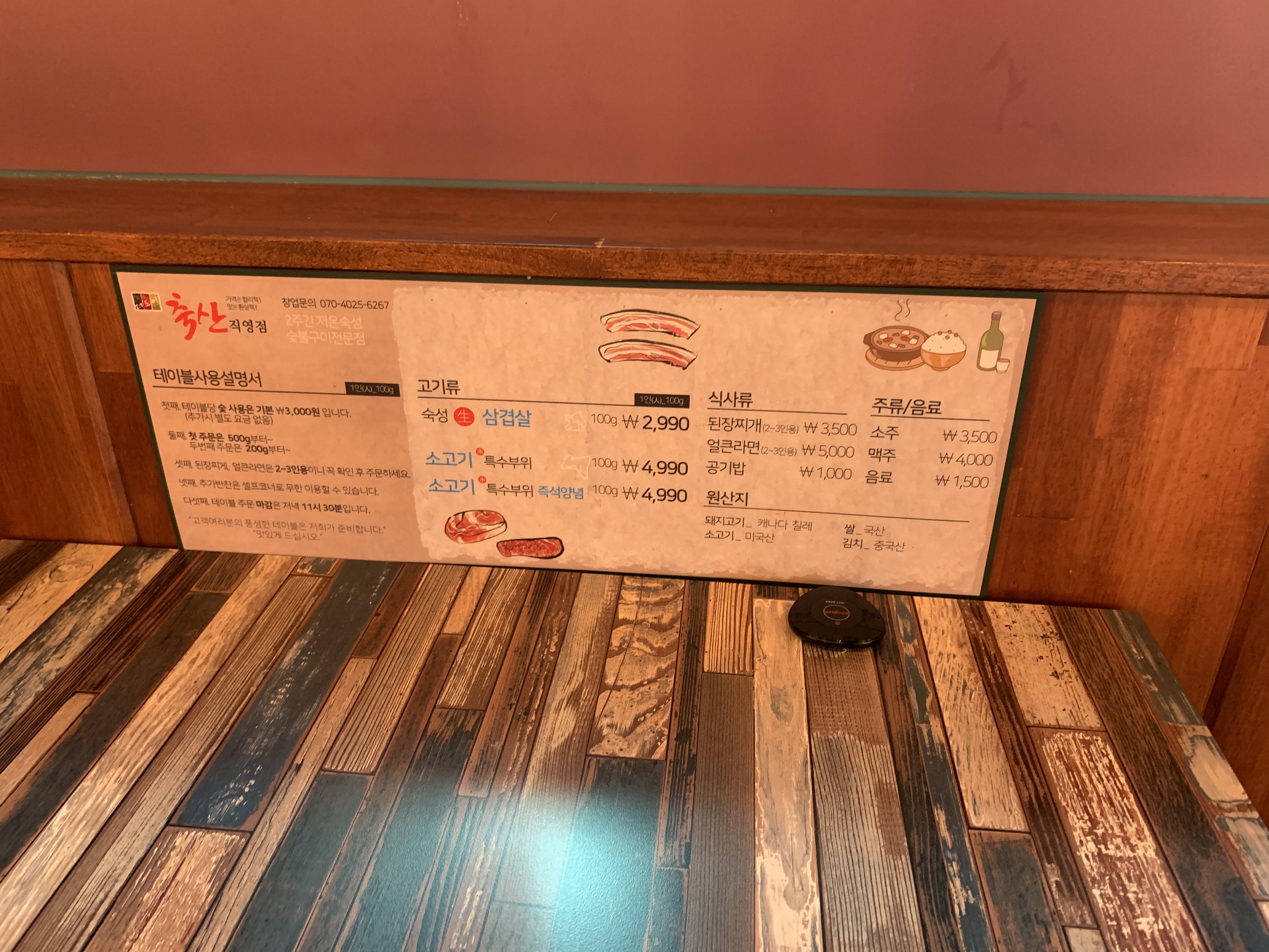 가격이 저렴한 만큼 메뉴구성도 단순하다. 삼겹살 / 소갈비살 / 양념소갈비살