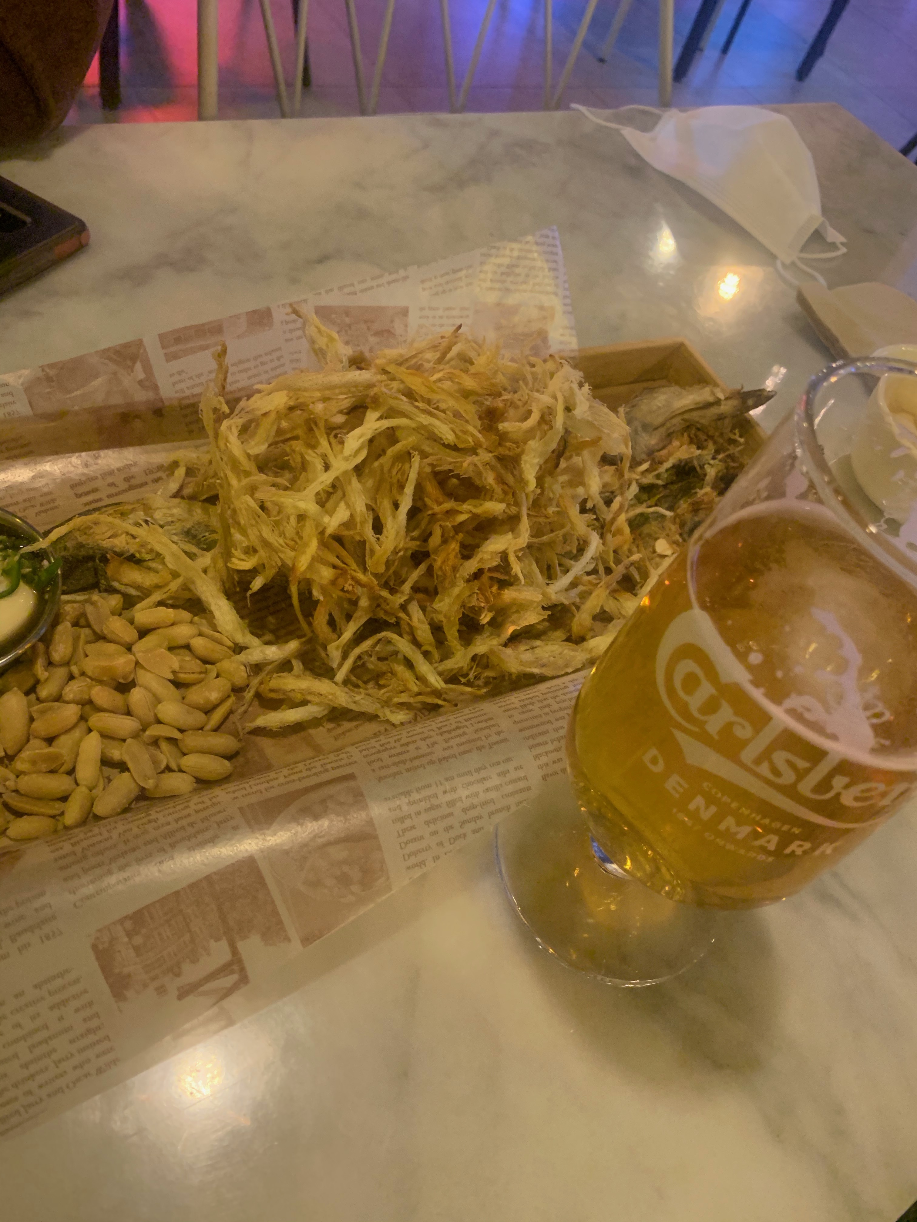 얼마 전에 수영 술곳간이란 곳에서 인상깊게 먹어서 먹태를 주문했는데 여기도 꽤나 비슷한 식감이었던 걸로 기억한다.
