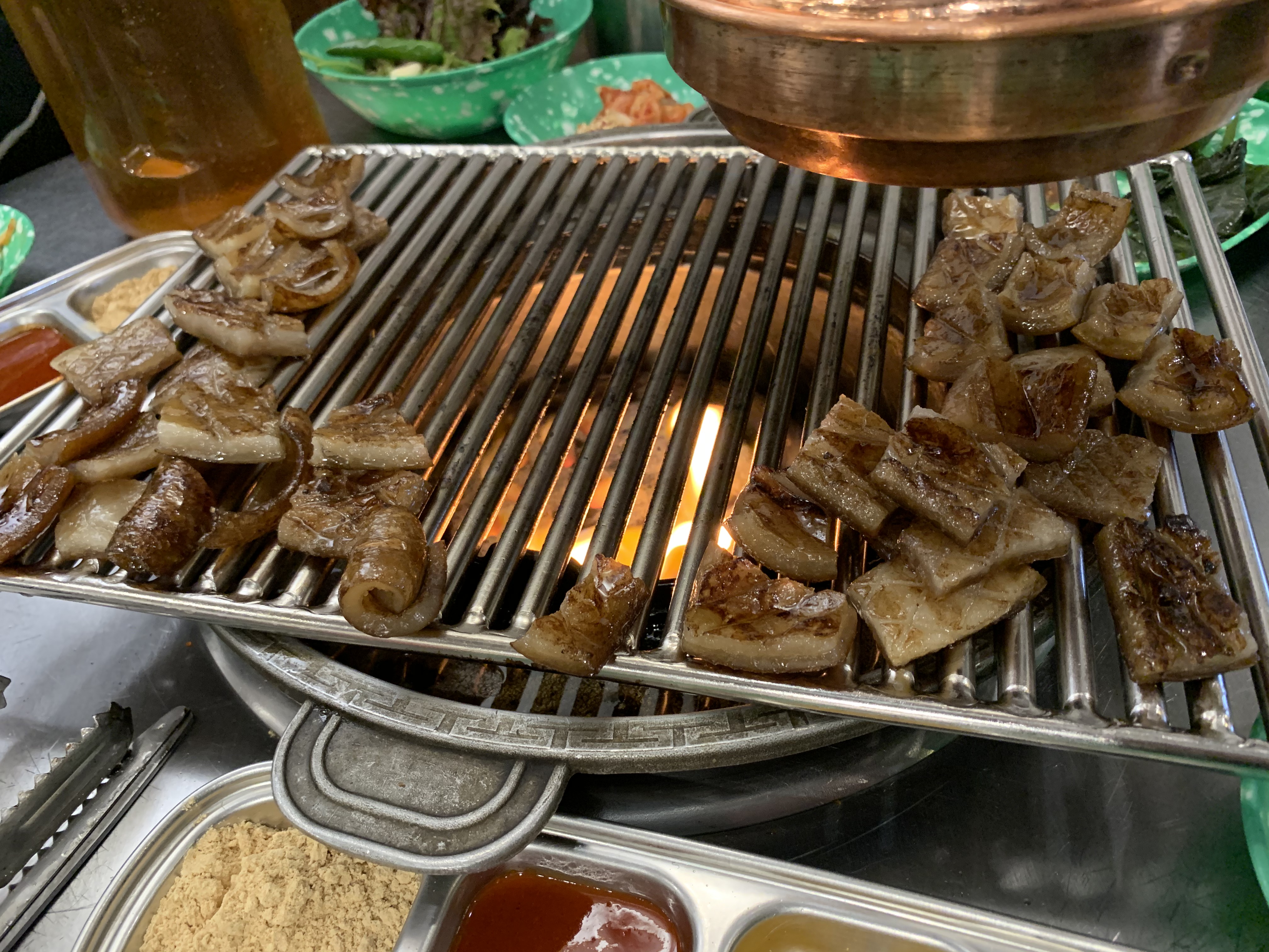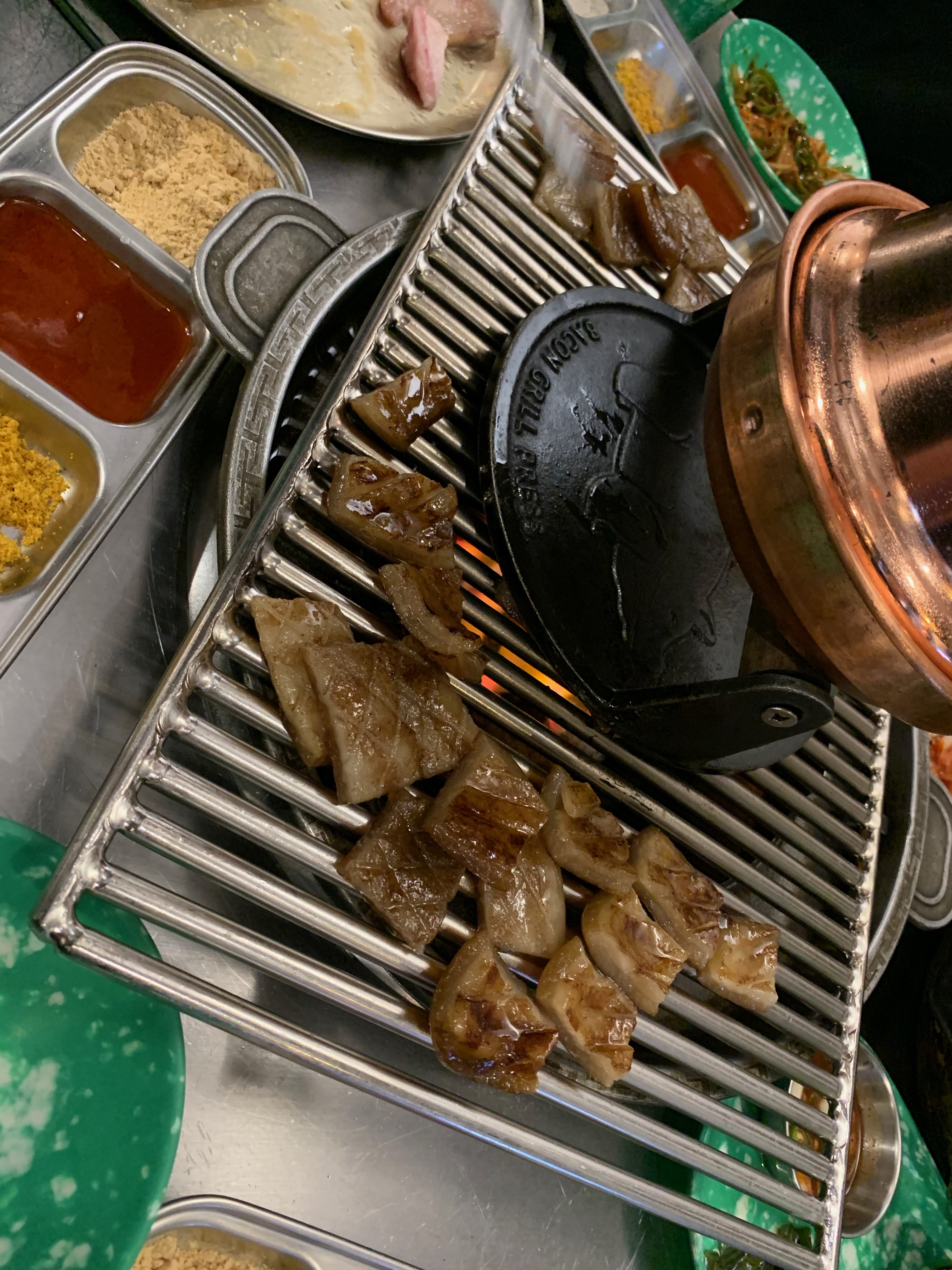 철판으로 눌러서 기름진 것이 튀는 것을 방지하는 것도 인상적이었다.