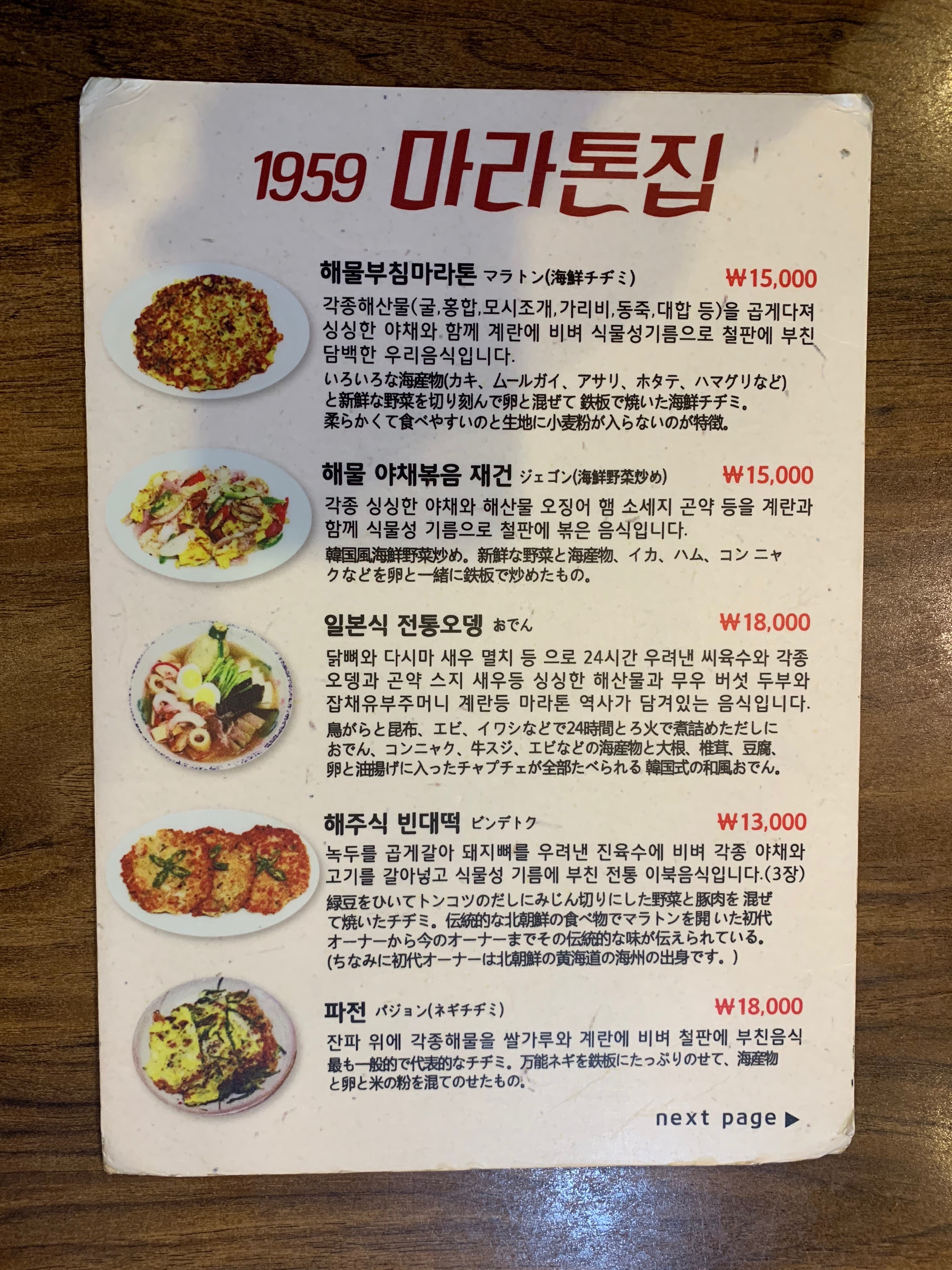 배가 부른 터라 해주식 빈대떡만 주문했다. 다른 메뉴들도 맛있다.