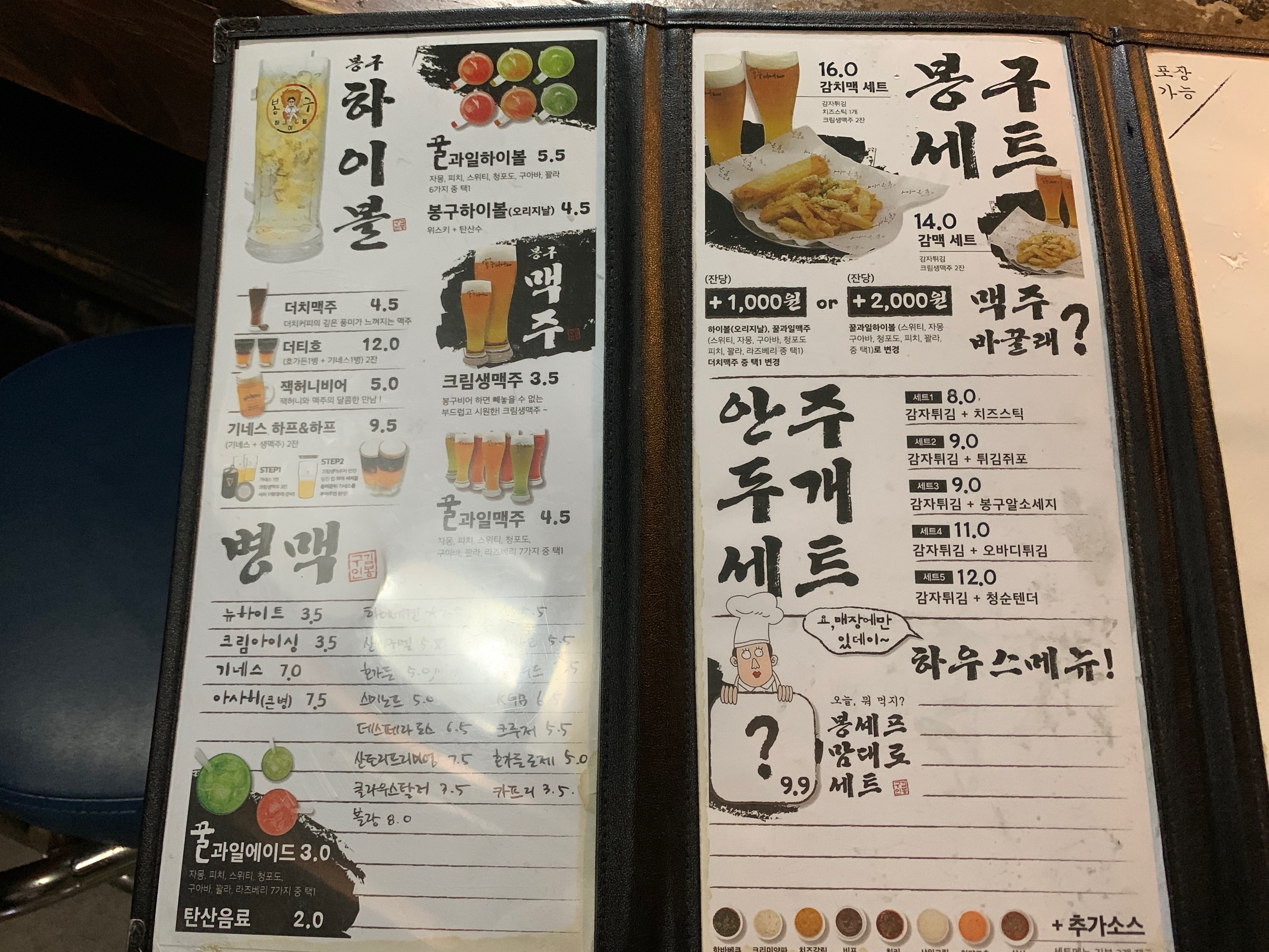 화명동에도 역전할맥이 있었지만 아재들이라 그냥 무난한 봉구비어를 방문했다. 좁지만 조용하니 좋았다.