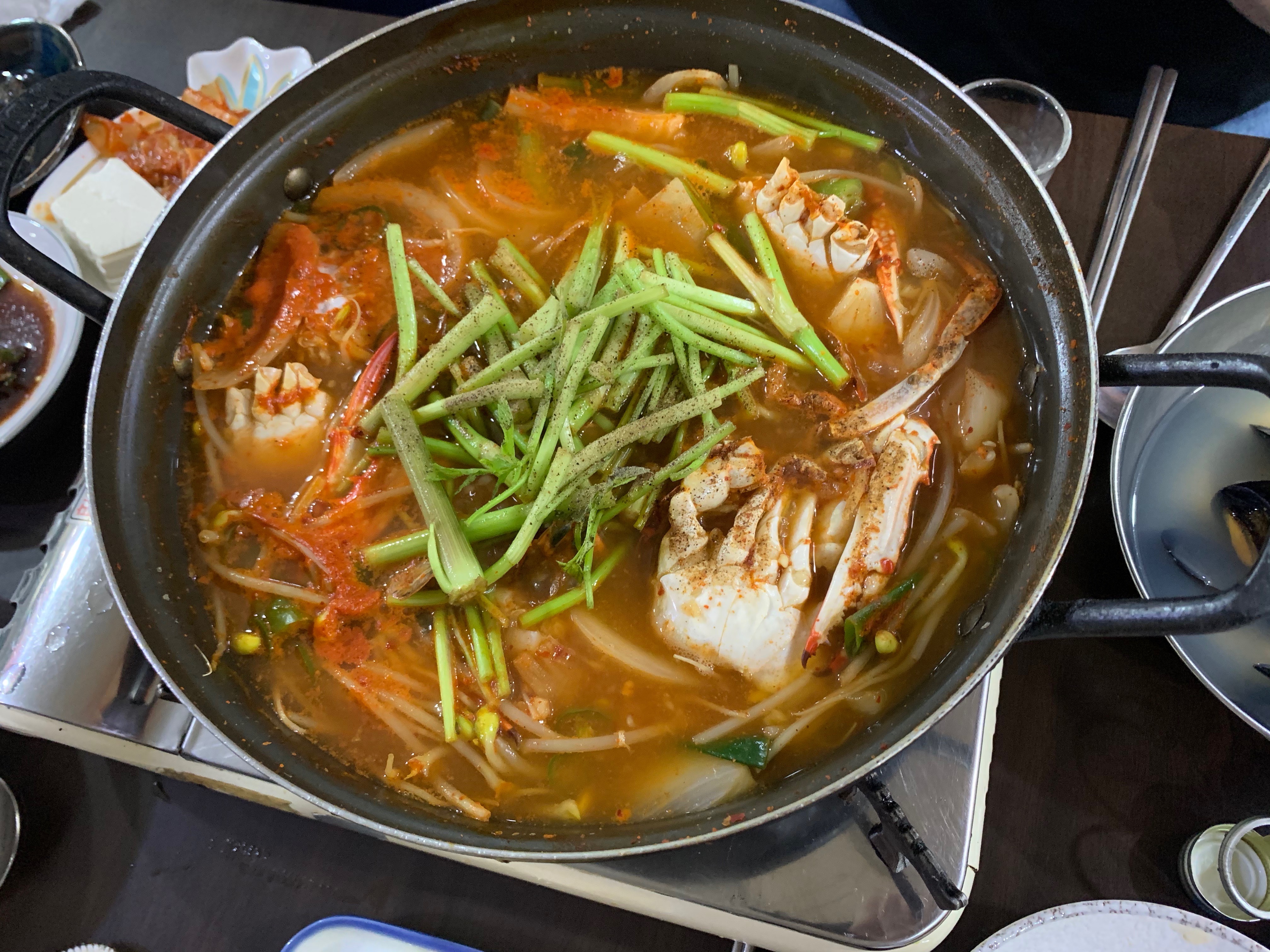 같이 술을 먹던 친구의 친구가 어디선가 대단히 비싸보이는 꽃게탕 사진을 보내왔는데 마침 여기도 꽃게탕이 있어 주문했다.