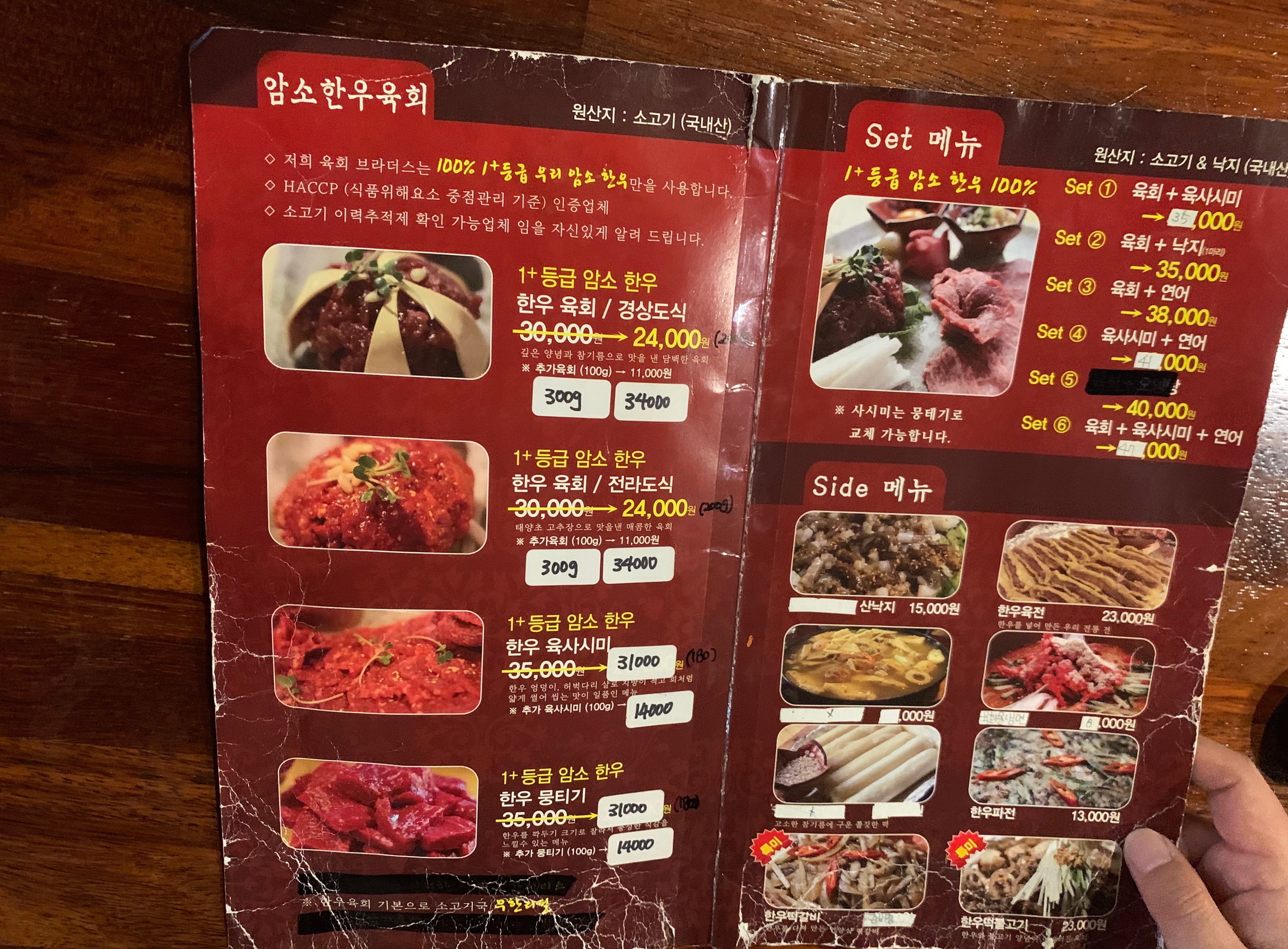 정말 오랜만에 서면에서 오래 살아남고 있는 술집 중 하나인 육회브라더스를 방문했다. 기본 메뉴들이 실하다. 전라도식 육회 24,000원 대략 18,000원 시절쯤 많이 다녔는데 어느 순간 2만원이 넘고