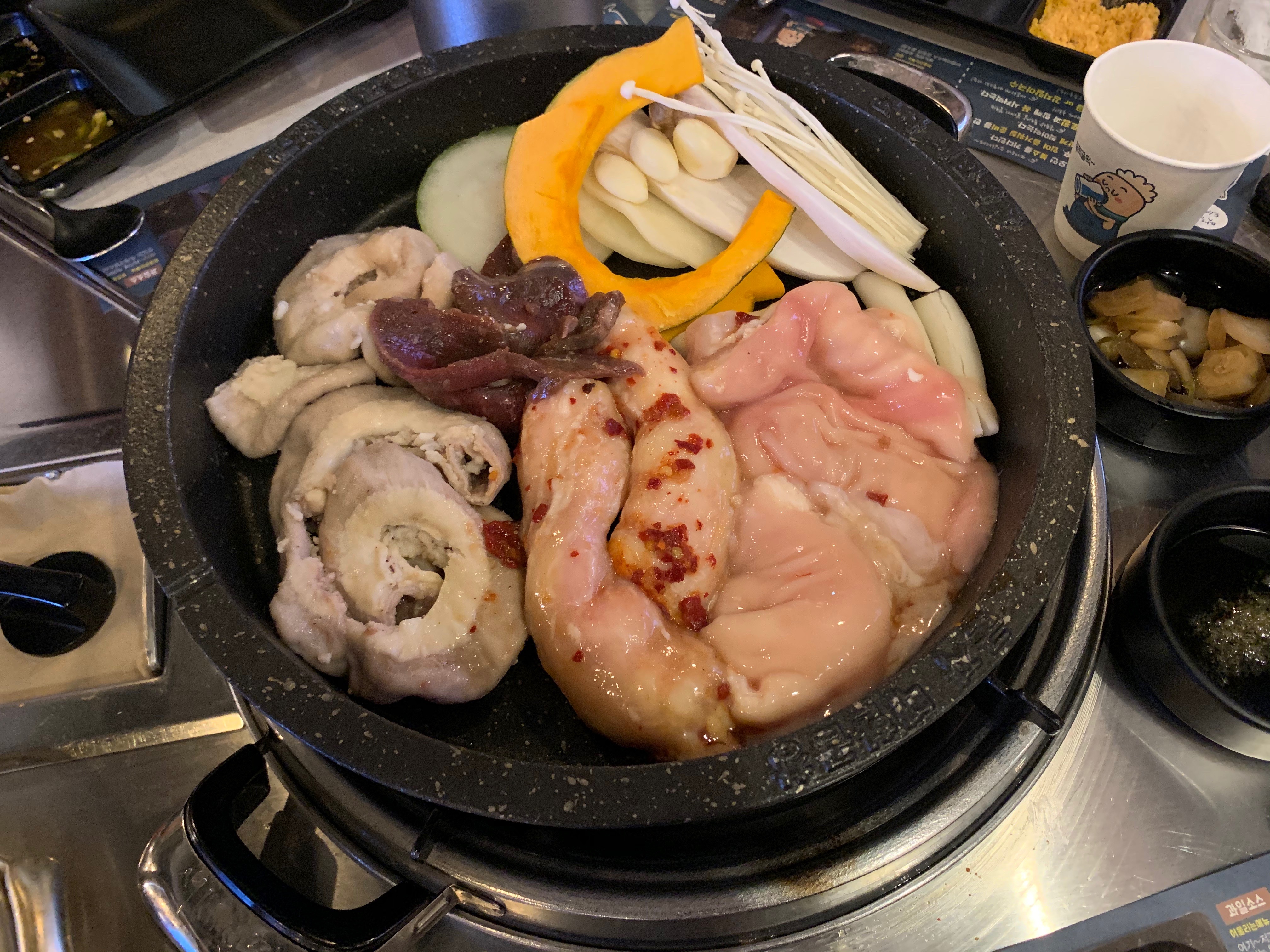 모듬곱창 3인(곱창/대창/막창/염통) 600g + 뚝배기 전골 + 깍두기볶음밥(2인) + 토핑