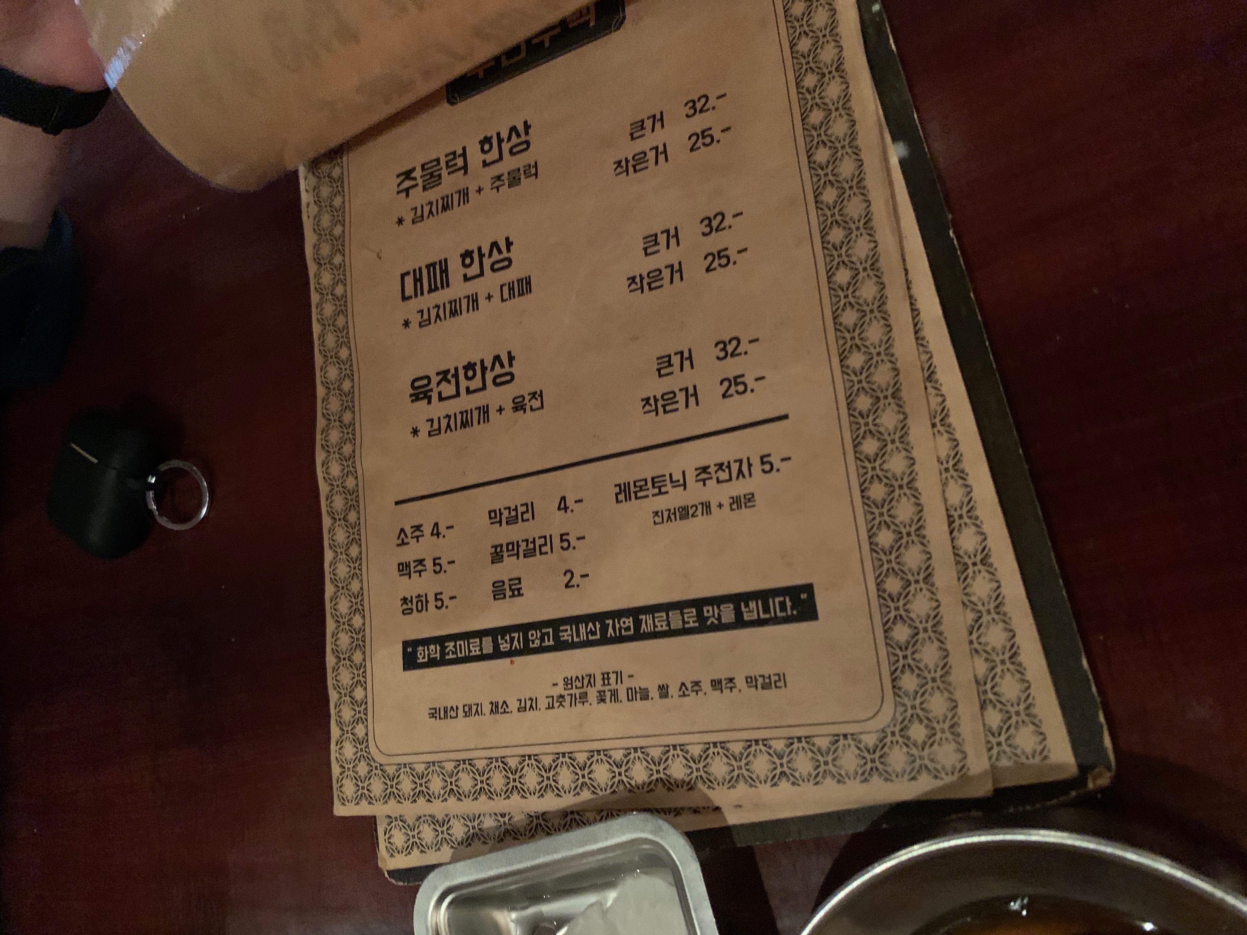 김치찌개 + 주물럭 큰 거 32,000원