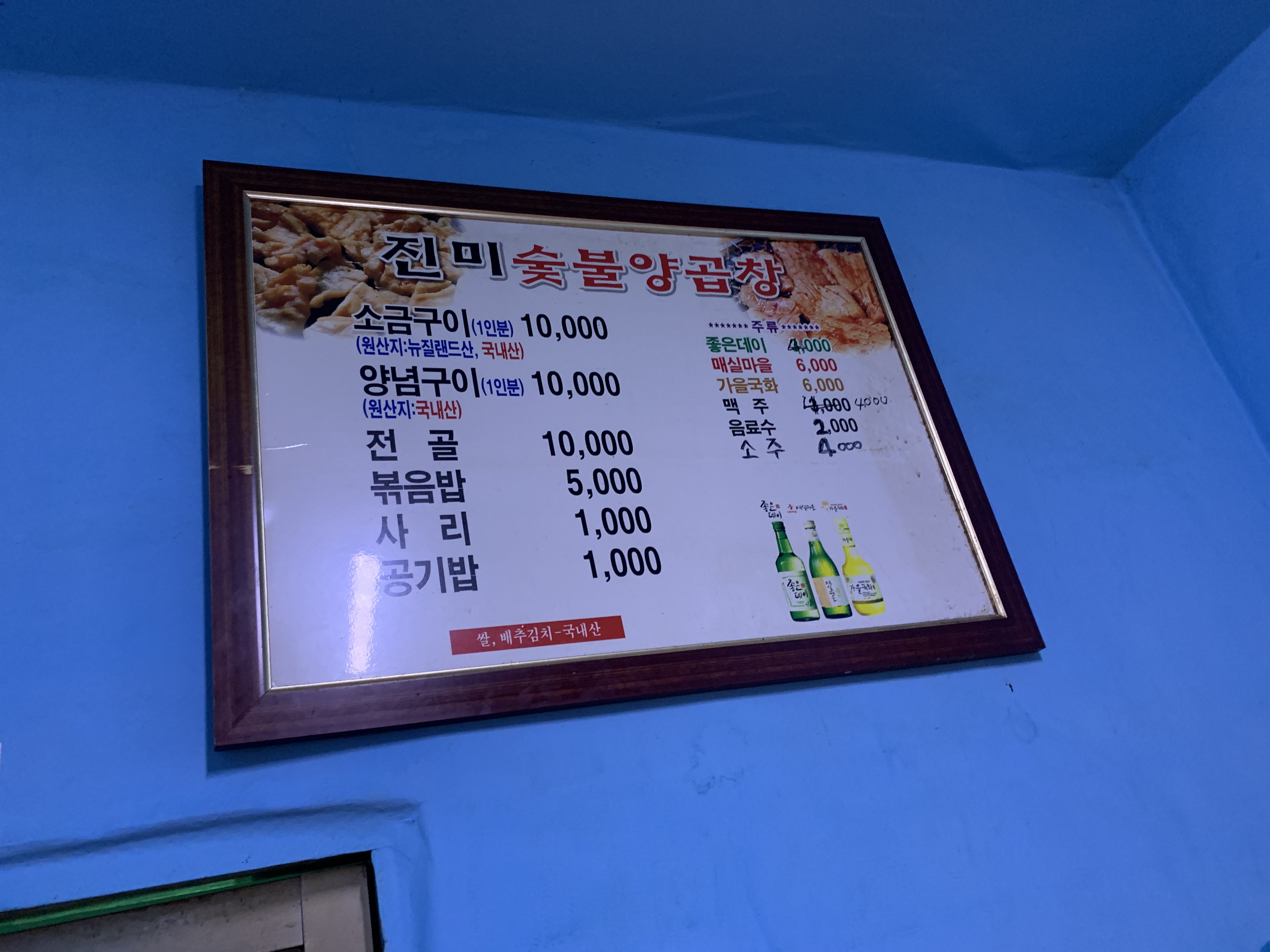 평일 다섯시 반에 방문했는데 6테이블이 모두 손님으로 가득했고, 주방 옆쪽에 작게 마련된 좌식 2테이블 쪽으로 자리잡았다. 바깥쪽은 시끌벅적한데 방은 조용해서 어떻게 보면 더 좋았다. 곱창 구울 때 연기는 좀 나더라만.