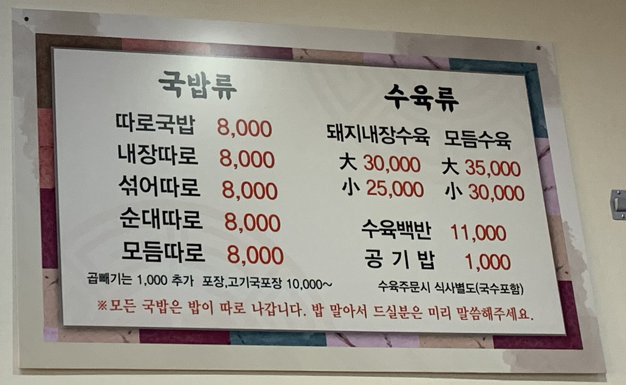 시장 안에 있는 국밥집 답지 않은 가격이다. 다른 국밥집들도 근처에 많은데 거기 가격들은 어떤지 모르겠다. 다른 블로그들을 찾아보니 따로국밥이 아닐 경우엔 7,500원이었는데 모두 따로국밥을 통일 시킨 듯 하다.