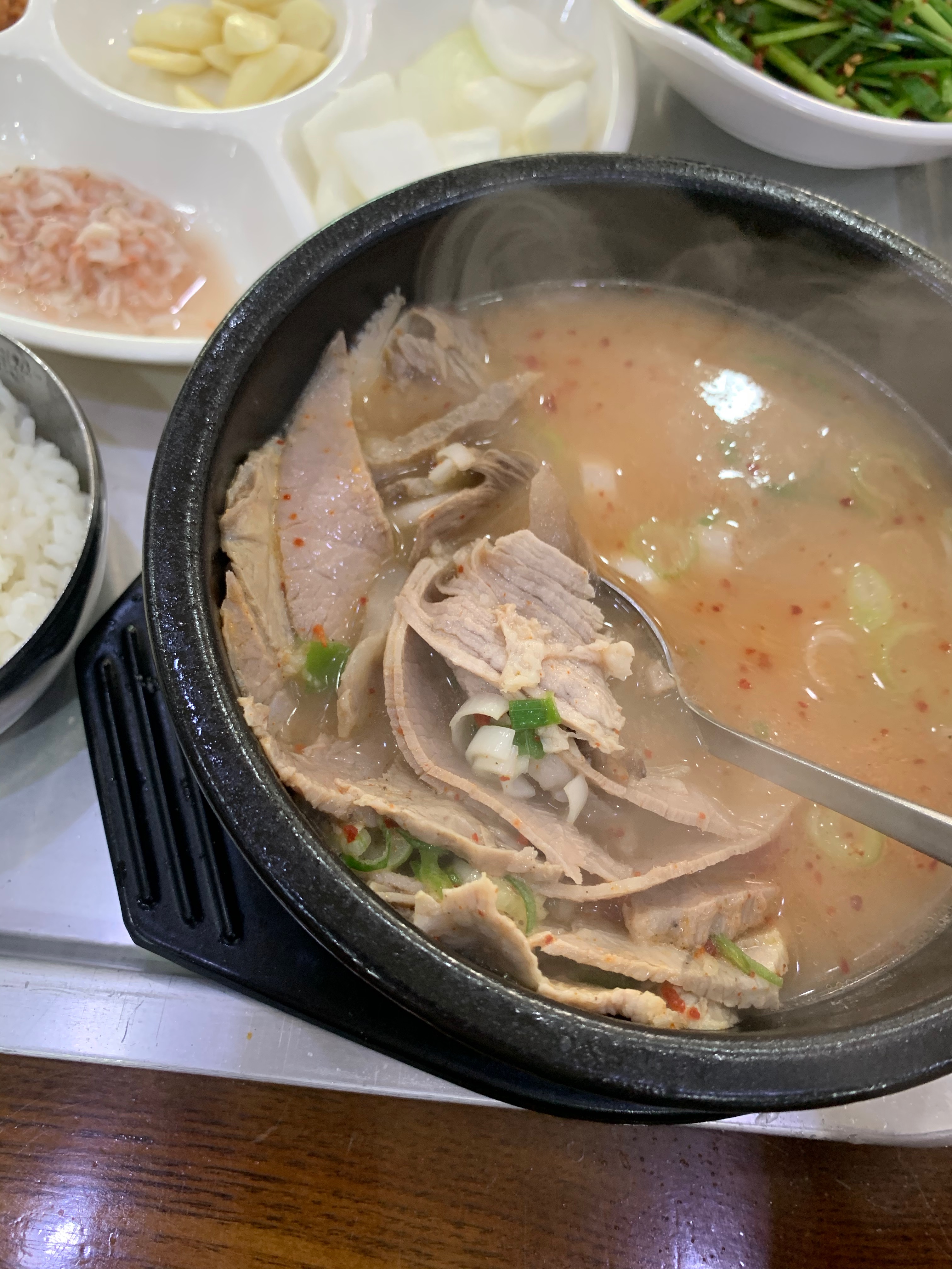고기는 무난하게 양이 많다. 다만 저번 마산식당에서도 느꼈지만 된장베이스의 국물맛이기 때문에 기존에 알던 돼지국밥맛이랑은 확실히 차이가 난다. 맛이 없다는 건 아닌데 그냥... 애초에 다른 맛이라서 비교할 수가 없다.
